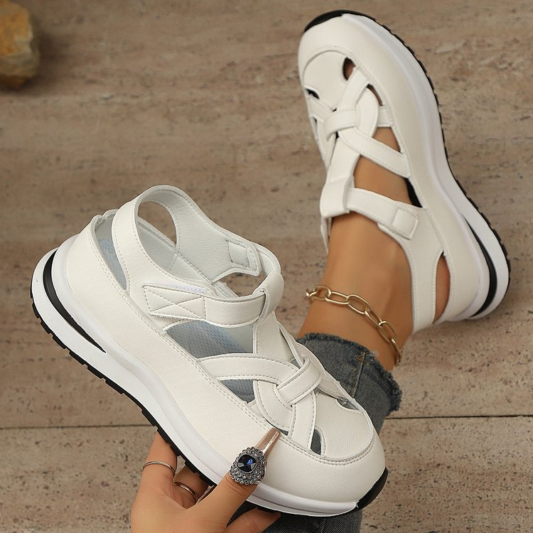 여름 송편 통굽 여성 통풍 웨지 샌들 펀칭 샌들 여 빅사이즈 여름 웨지 샌들